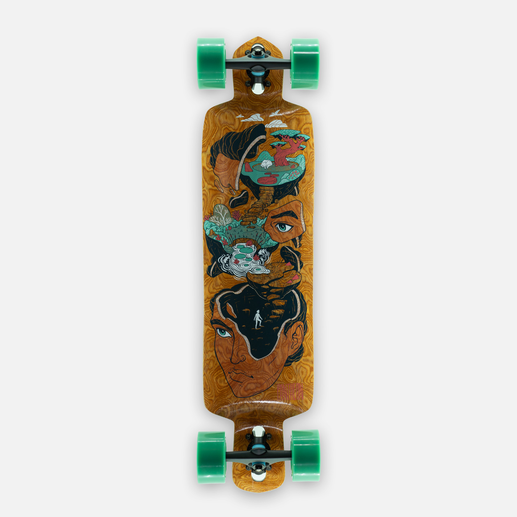 I don’t know what to say other than this board feels alive. Like it has its own personality and chose me. I messaged Jeff about a year ago asking about the pranayama, but I was a bit apprehensive because I’m a big guy with a wide stance, and he directed me towards the Quest and I couldn’t be happier with it. People regularly think I’m on an electric board. it makes no sense how this thing is able to move the way it does. it glides over everything and gives back what you put into it. With the new Karma wheels on it I find the center line to be very stable, and the more I lean into a turn the more responsive it gets. this is great for me because I often mix up my riding. Sometimes I’m cruising in a straight line for miles, other times I’m weaving in and out of the sidewalk and city streets. This board will cure your depression and may very well have a soul of its own.